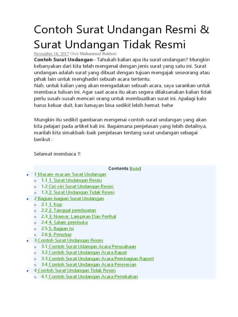 Penempatan tempat dan tanggal ini biasanya berada pada bagian kanan atas surat. Berikut kami bagikan contoh surat undangan yang bisa kami bagikan surat undangan yang tersedia di masyarakat terbagi menjadi dua jenis, yaitu surat resmi dan tidak resmi. Surat undangan bukan melulu tentang sebuah surat dengan bahasa yang tidak baku dan gaya penulisan yang bebas tapi rapi. Bagian ini biasanya terbuat dari urugan tanah, pasangan batu kali, dan bronjong atau beton. Kepala atau kop surat yang terdiri dari pembuka, isi, dan penutup surat yang berisi salam penutup, jabatan, tanda tangan, dan.